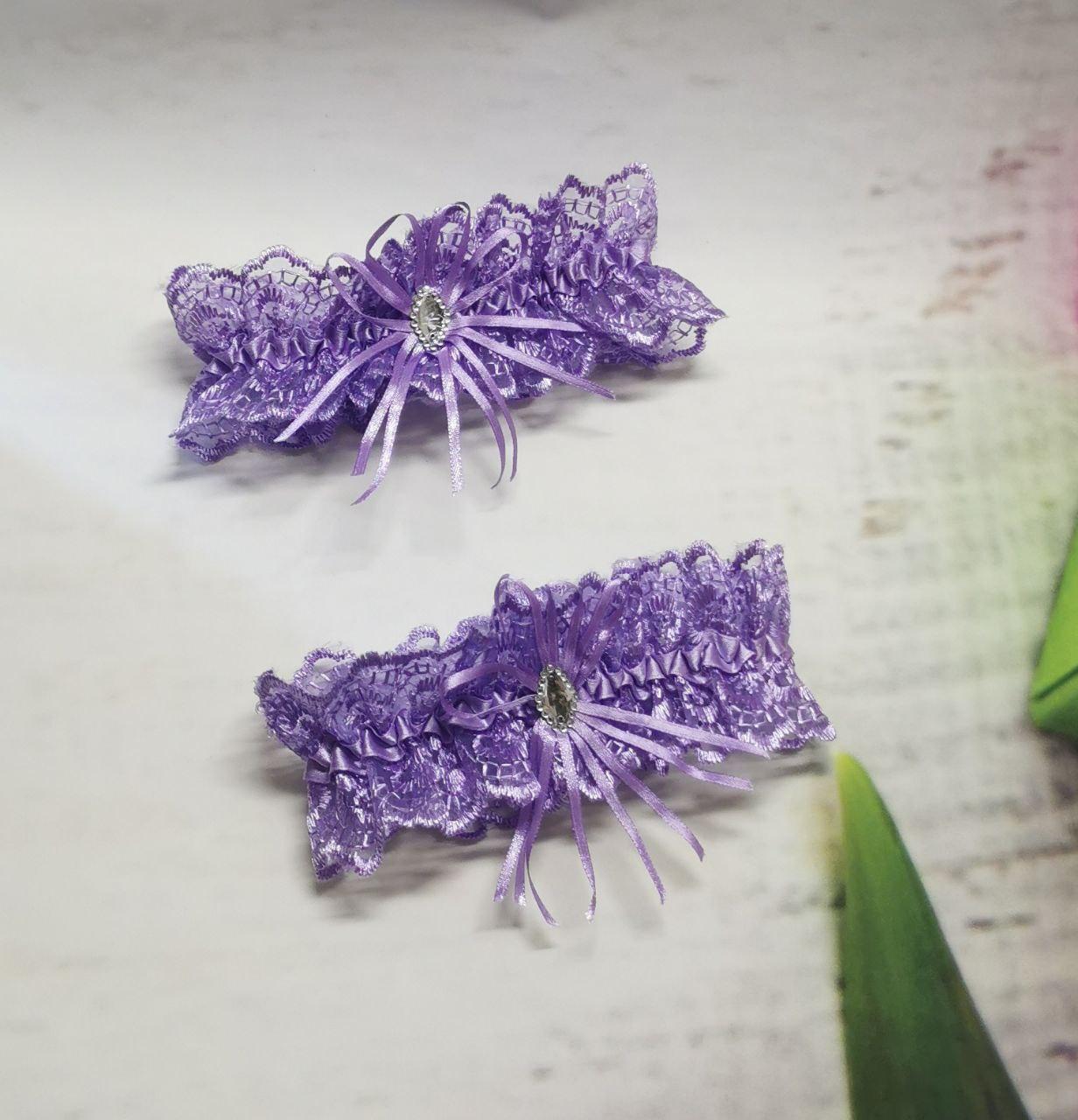 Сиреневые подвязки высота 6.8 см – неотъемлемая деталь подвенечного наряда невесты. Изящный аксессуар с кружевным оформлением и красивым декоративным бантом из атласных лент, оснащен удобной широкой резинкой с внутренней стороны. Удобно прилегает к ноге, не вызывая дискомфорта и чувства давления. Не сползает, позволяет чувствовать себя уверенно даже во время большой активности.