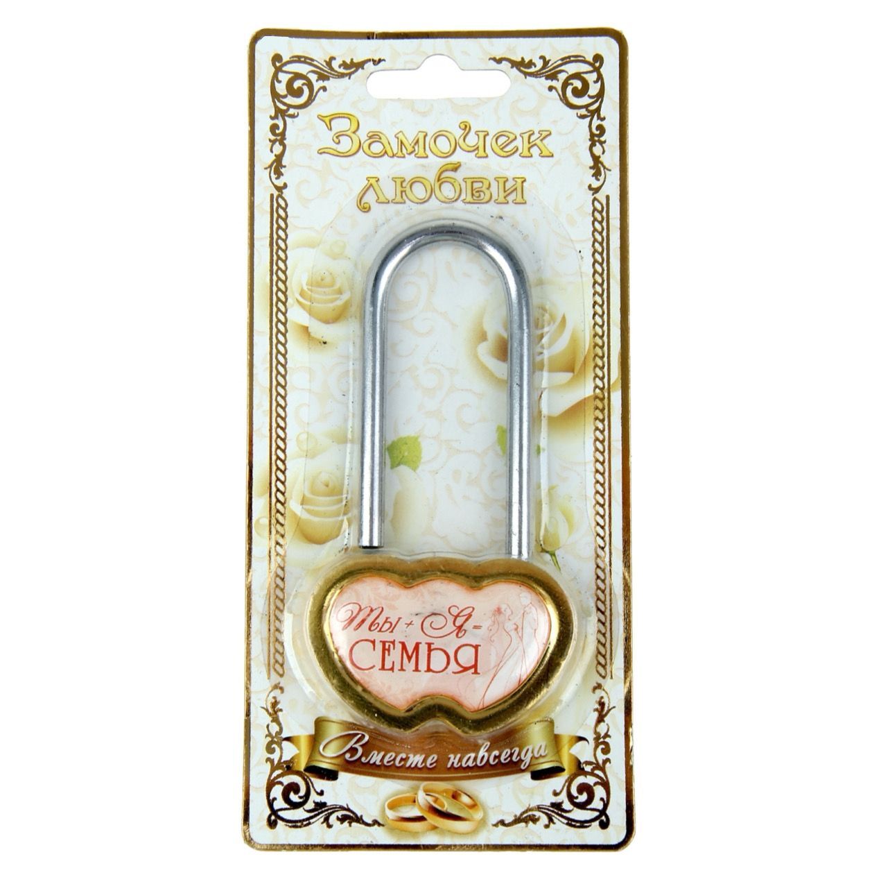 Почему современные пары так любят соблюдать различные свадебные традиции в этот важный день? Обряды делают торжество незабываемым, наполненным священным смыслом и волшебными моментами. Замок свадебный "Ты + я = семья" поможет воплотить в жизнь одну из простых, но очень романтичных традиций. Сувенир символизирует объединение двух жизней, настоящую любовь и крепкие семейные узы. Символичный ритуал закрытия замочка любви станет достойным украшением свадьбы.